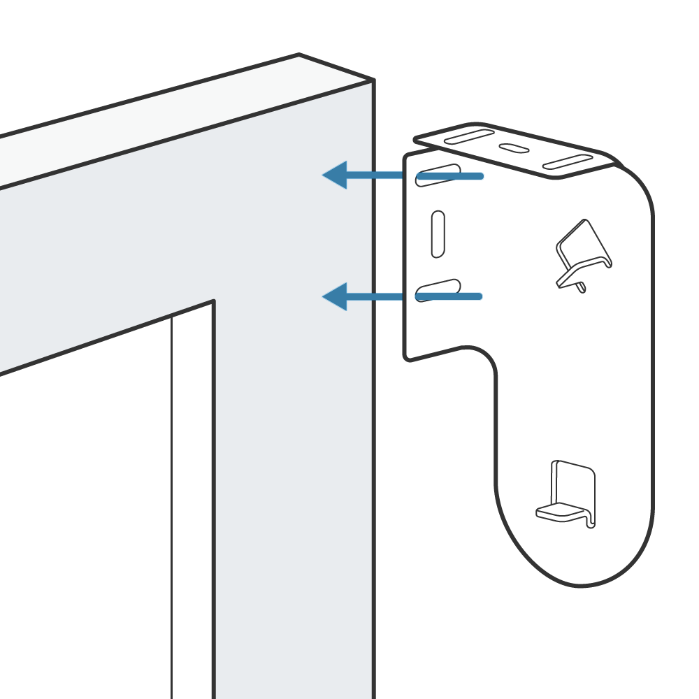 3. If necessary, pre-drill two holes and fasten the bracket securely using screws.